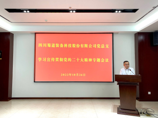 2022年10月26日,蜀道裝備公司黨總支組織召開學習宣傳貫徹黨的二十大精神專題會議。公司黨總支書記、董事長羅曉勇同志通過視頻方式組織宣貫黨的二十大報告并講話,黨總支副書記、董事、總經理謝樂敏同志主持會議,在家領導班子成員依次作學習交流發言,各出資企業領導班子成員及公司本部總助職級、中層職級管理人員,技術副總工及業務總監共54人參加會議。
