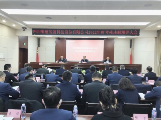 1月17日下午,四川蜀道裝備科技股份有限公司2022年度黨建考核暨領導班子和領導人員述職測評大會在成都召開。省國資委黨校執行副校長、集團公司黨校常務副校長、培訓發展中心主任、蜀道教育公司執行董事許正權一行出席,蜀道交通服務集團黨委書記、董事長兼蜀道裝備公司黨總支書記、董事長羅曉勇主持,蜀道裝備公司領導班子成員、外部董事、職工監事、中層管理人員代表、在蓉出資企業主要負責人以及公司部分職工代表共43人參加會議。