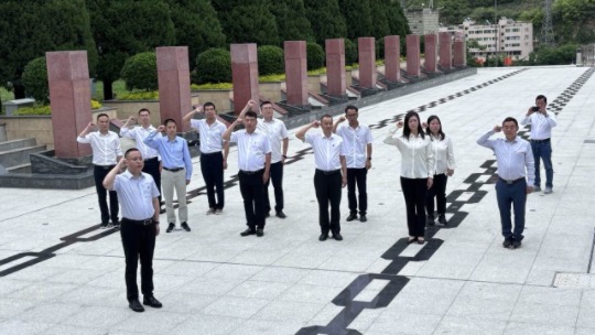 飛奪瀘定橋紀念館紀念碑前,全體黨員干部整齊列隊,向英勇獻身的烈士默哀并鞠躬,向人民英雄敬獻花籃。蜀道裝備深冷科技公司黨支部書記陳毅,黨支部委員、執行董事陸凌上前整理花籃緞帶,表達對人民英烈的無限哀思和崇高敬意。在陳毅同志的領誓下,全體黨員面對鮮紅的黨旗高舉右手,莊嚴重溫入黨誓詞,進一步增強責任感和使命感。