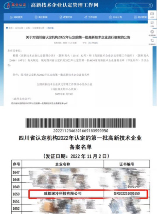 11月23日,高新技術企業認定管理工作網發布了《關于對四川省認定機構2022年認定的第一批高新技術企業進行備案的公告》,成都深冷科技有限公司順利通過了國家高新技術企業認定。這是公司在企業技術研發創新平臺上獲得的又一個榮譽,也是對公司在產品創新方面做出卓越貢獻的有力肯定。
