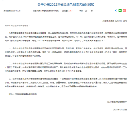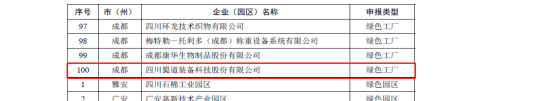近日,四川省經濟和信息化廳公布了2022年省級綠色制造名單。四川蜀道裝備科技股份有限公司被認定為“綠色工廠”,標志著蜀道裝備公司的綠色制造體系及堅持低碳環保發展思路得到了省廳高度認可。