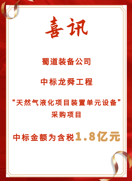 蜀道裝備22日晚間公告,公司日前收到廣東龍舜工程有限公司發來的《中標通知書》,經評審確定公司為龍舜工程“天然氣液化項目裝置單元設備”采購項目中標單位,中標金額1.83億元(含稅),占公司2022年營業收入的76.73%。