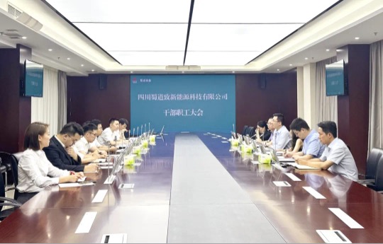 近日,蜀道致新能源科技公司召開干部職工大會。蜀道裝備公司黨委書記、董事長胡圣廈出席會議并講話,黨委副書記、職工董事、工會主席陳毅主持會議。
