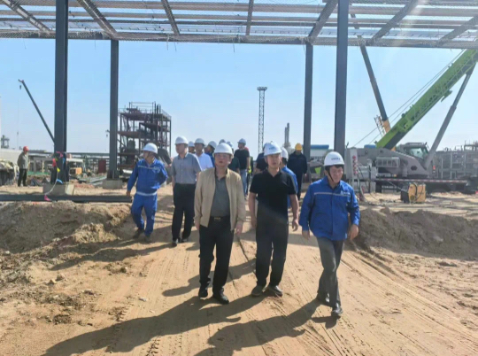 慰問結束后,崔治祥一行深入項目作業區域,實地查看施工現場的腳手架搭設、臨時用電、臨時動火、高處作業防護、大型設備吊裝等情況,對現場安全標識、消防器材、應急通道、員工勞動防護用品、安全操作規程等逐一檢查。