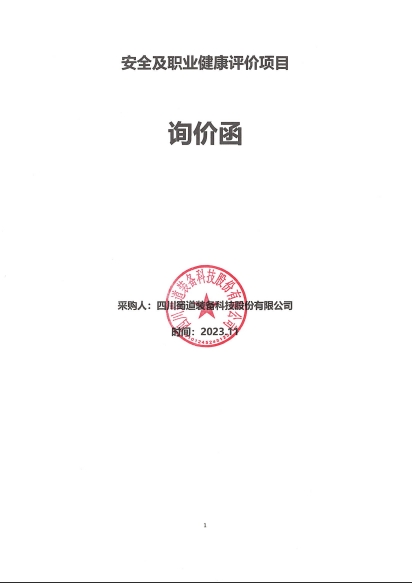 四川蜀道裝備科技股份有限公司安全及職業(yè)健康評(píng)價(jià)詢價(jià)函