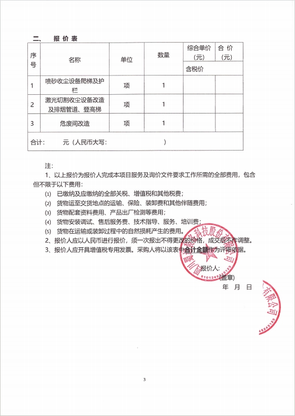 四川蜀道裝備科技股份有限公司環境安全隱患治理公開詢價