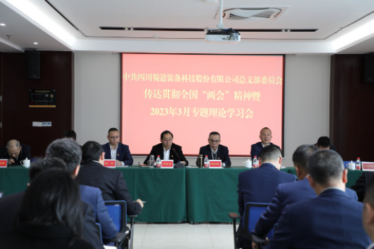 2023年3月29日下午,中共四川蜀道裝備科技股份有限公司總支部委員會(huì)召開(kāi)傳達(dá)貫徹全國(guó)“兩會(huì)”精神暨2023年3月專題理論學(xué)習(xí)會(huì)。公司黨總支書記、董事長(zhǎng)羅曉勇主持并宣講全國(guó)“兩會(huì)”精神,公司黨總支副書記、董事、總經(jīng)理謝樂(lè)敏等4位同志作交流發(fā)言。同時(shí)還圍繞國(guó)企領(lǐng)導(dǎo)管理人員從業(yè)規(guī)范開(kāi)展了學(xué)習(xí)培訓(xùn),公司黨總支委員及其他領(lǐng)導(dǎo)班子成員、總助級(jí)、中層管理人員(含專業(yè)技術(shù)副總工、業(yè)務(wù)總監(jiān)),各出資企業(yè)黨支部委員及其他領(lǐng)導(dǎo)班子成員,公司本部第一、第二黨支部及團(tuán)支部委員共61人參加。